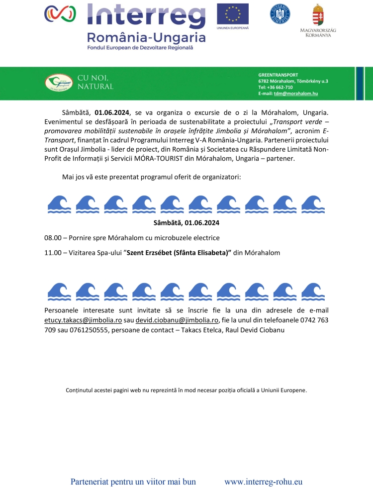 Sâmbătă, 01.06.2024, se va organiza o excursie de o zi la Mórahalom, Ungaria.