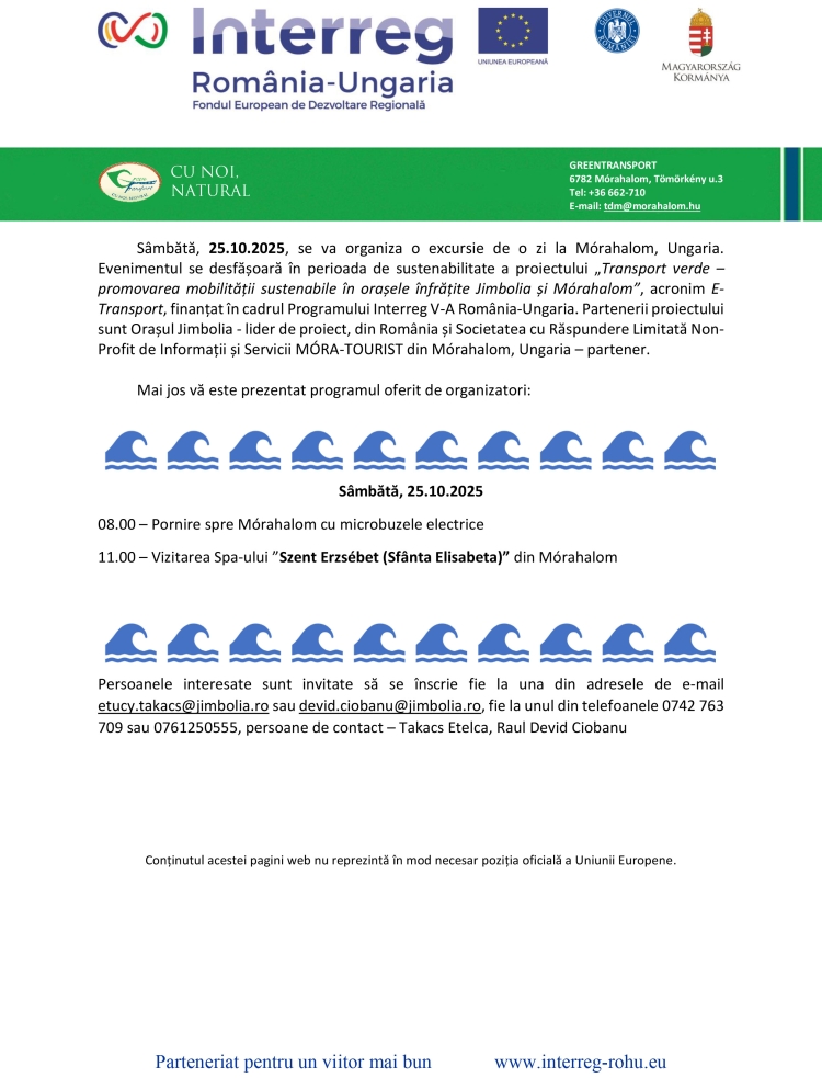 Sâmbătă, 25.10.2025, se va organiza o excursie de o zi la Mórahalom, Ungaria.